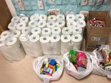 子供からの飴の入った折り紙BOXの手渡し、生活用品の寄贈もしました。スタッフの方にも大変喜ばれました。
